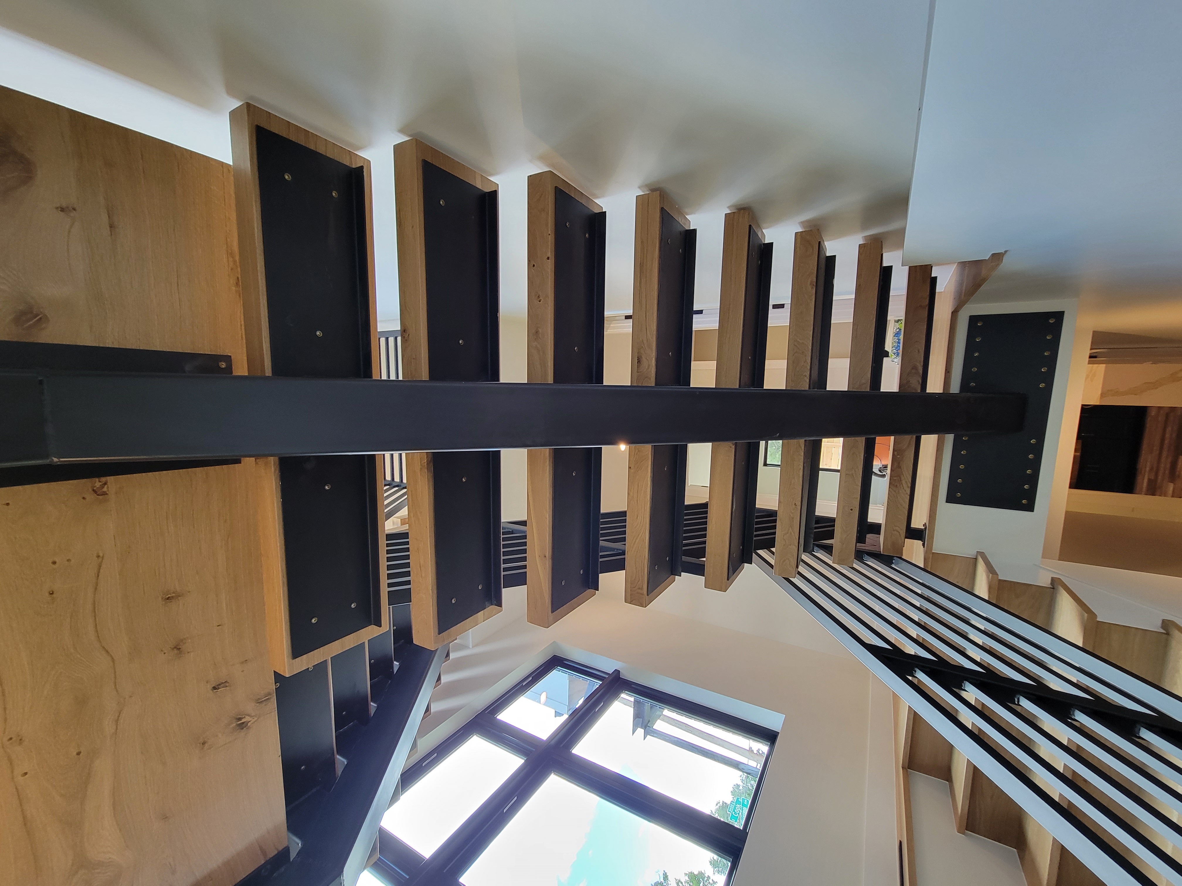 Residential Monorail Staircase structural steel erection plans and shop fabrication drawings: